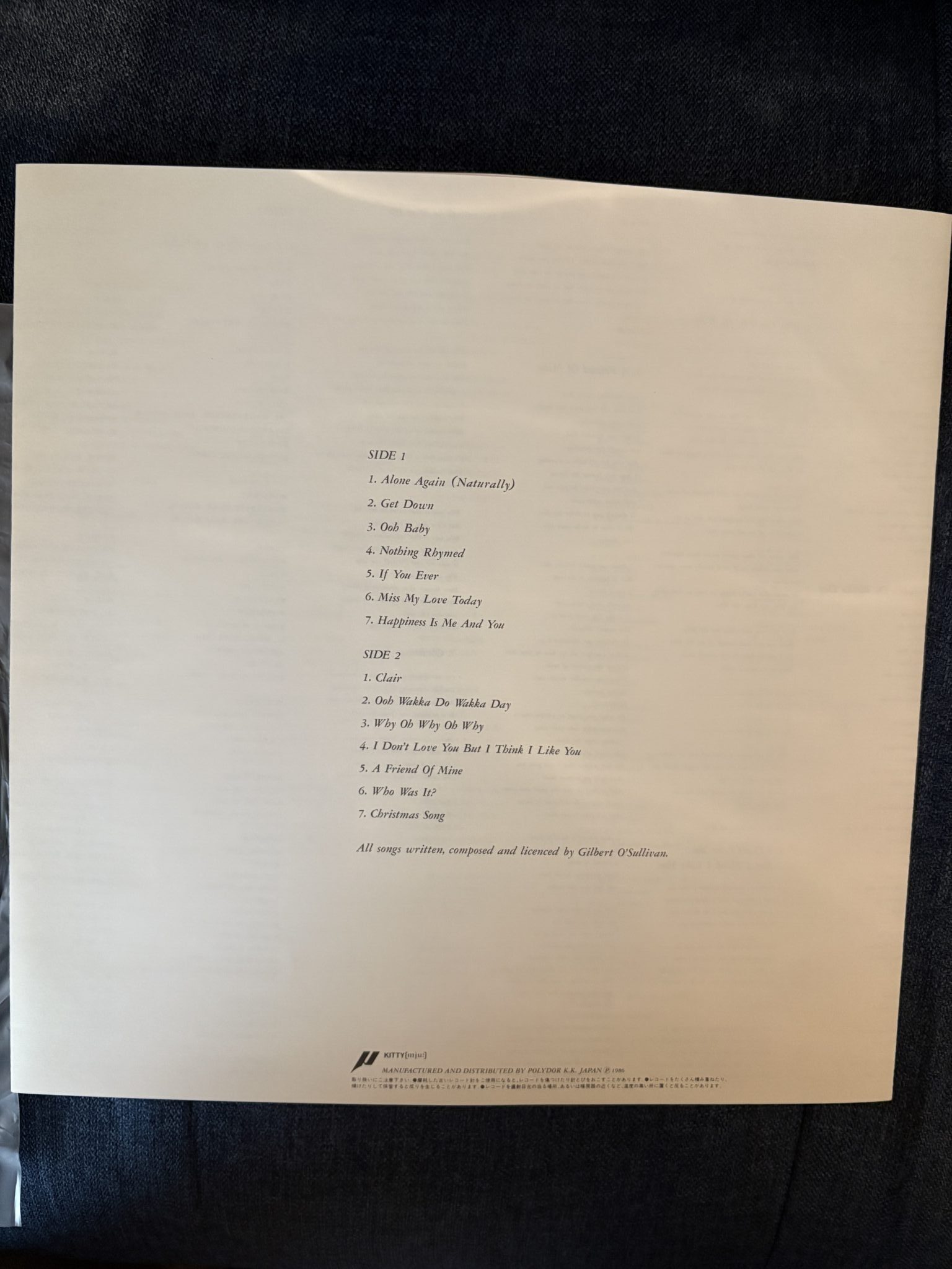 ギルバート・オサリヴァンのアナログ盤『アローン・アゲイン』。